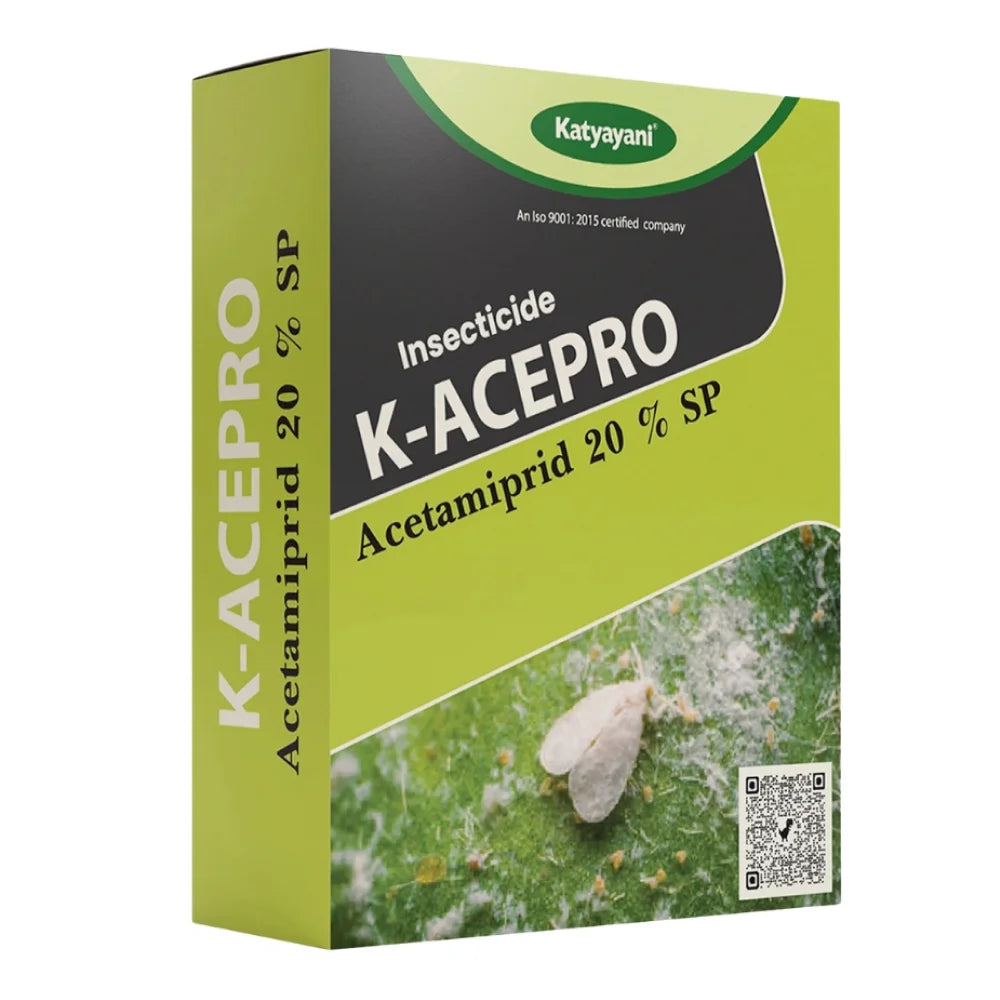 ➔ कात्यायनी K-Acepro (Acetamiprid 20% SP) हे थ्रिप्स, व्हाईटफ्लाय जॅसिड्स, ऍफिड्स, लीफहॉपर्स लीफमायनर्स स्केल इत्यादी शोषणाऱ्या कीटकांवर उत्तम नियंत्रण असलेले एक किफायतशीर उत्पादन आहे.